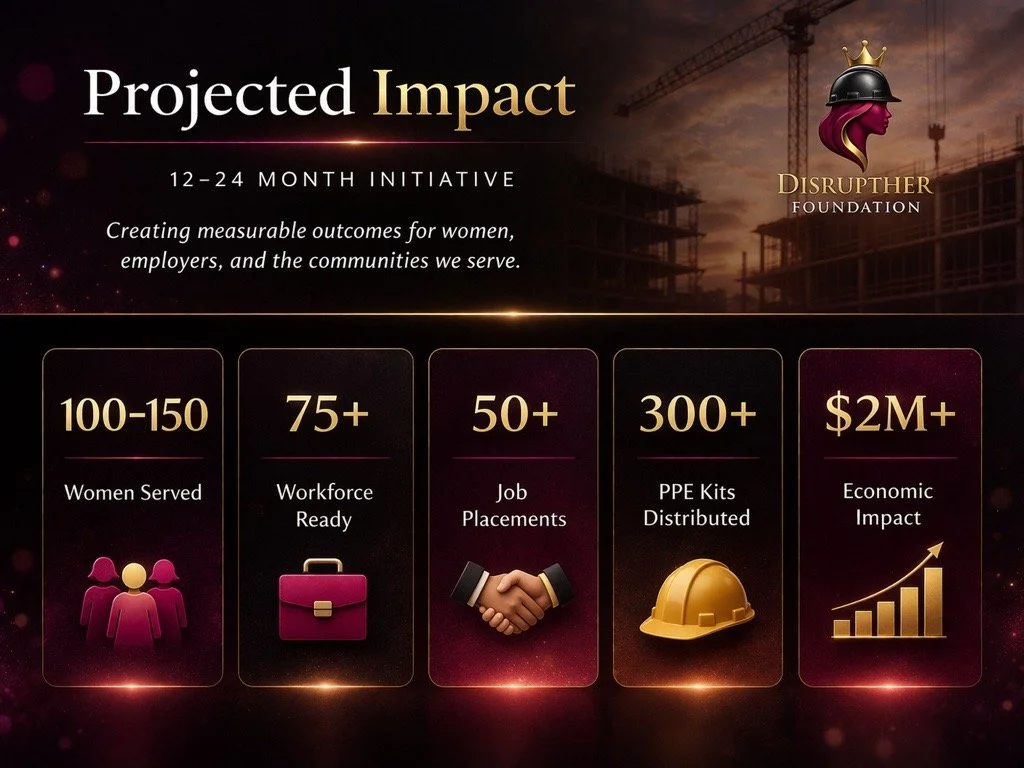 At DisruptHER Foundation, our programs are designed to create real, measurable impact—introducing women to high-quality career pathways, equipping them with essential skills, and supporting their journey toward long-term economic empowerment.