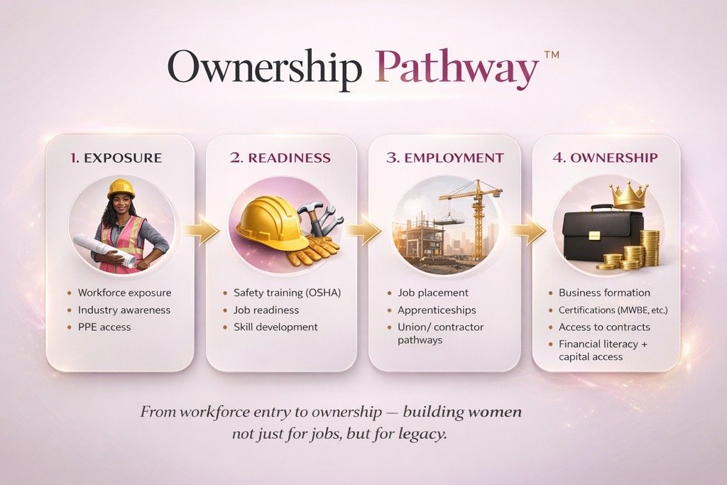 Ownership Pathway™ is designed to help women build sustainable careers by providing the knowledge, resources, and guidance needed to pursue entrepreneurship and contracting opportunities within the construction and infrastructure sectors.